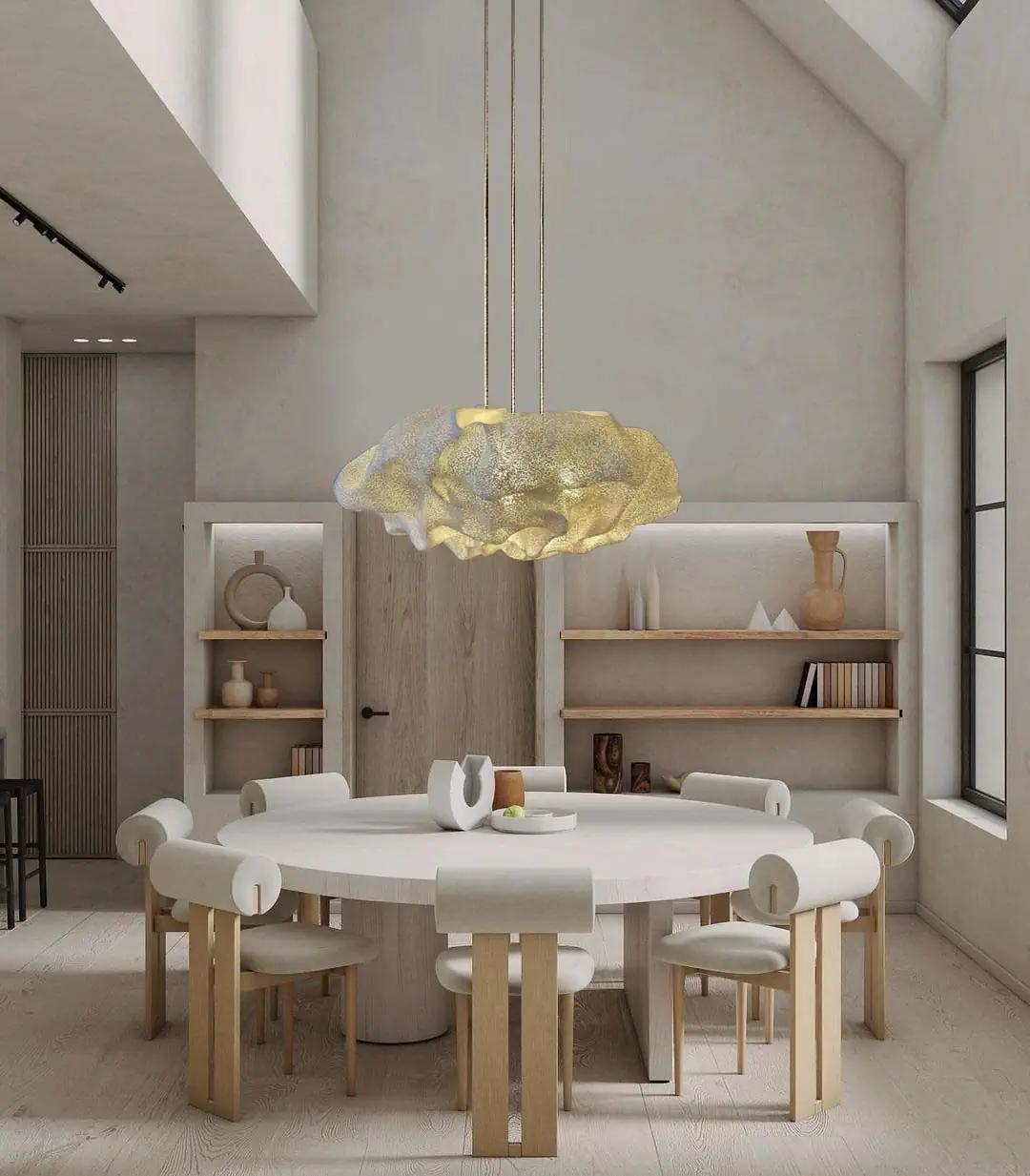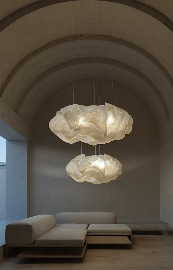 The figure of Nefeli, goddess of clouds and symbol of hospitality, embodied the designer’s desire to render a light that is not just functional, but emotional — a light that embraces the space with the same softness and transparency as the clouds in the sky.